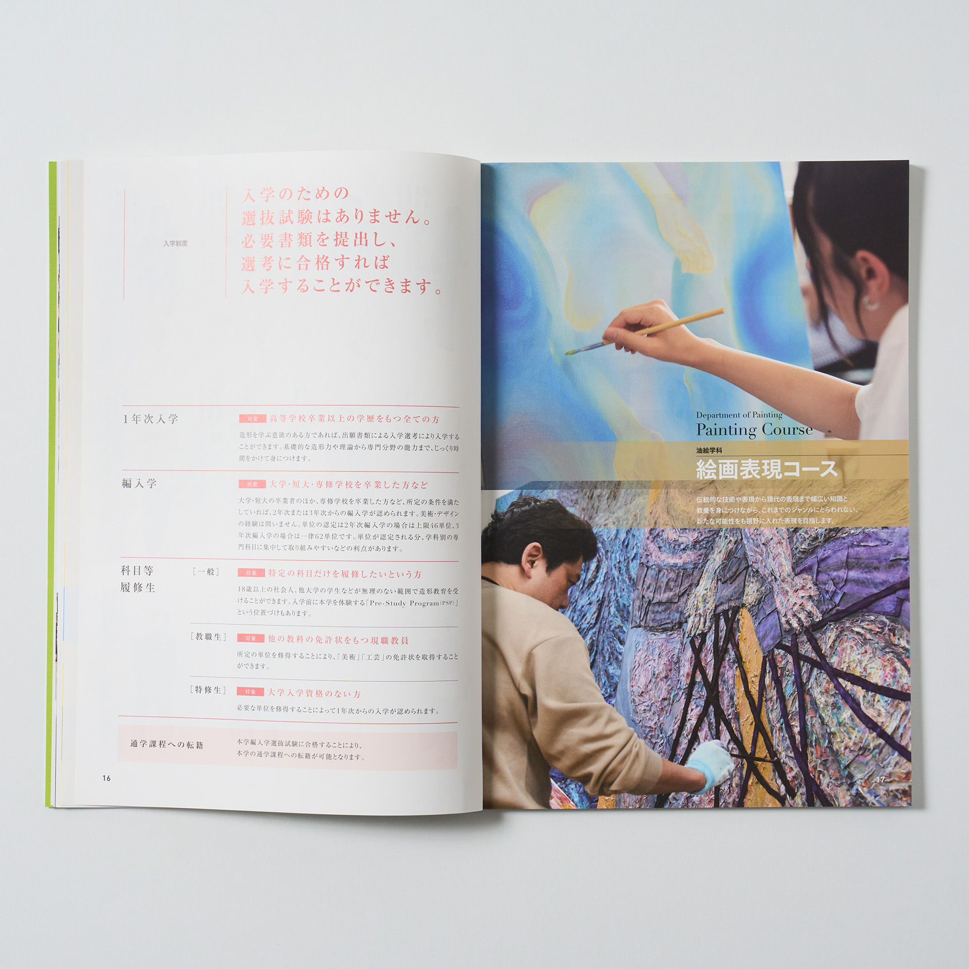 武蔵野美術大学造形学部通信教育課程の2026年度用の入学案内パンフレットをデザイン・編集をしました。表紙はCYMをそれぞれDICの蛍光色に変更し、白と銀を含む6色で印刷をしました。
