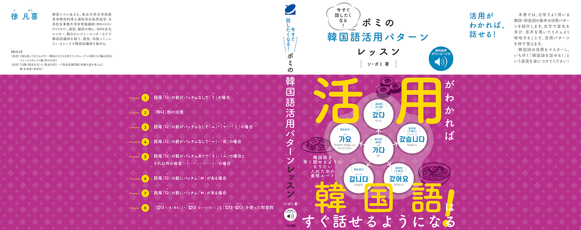 ベレ出版さまから出版された、『今すぐ話したくなる!ポミの韓国語活用パターンレッスン』のカバー周り一式、本文フォーマットをデザインをしました。