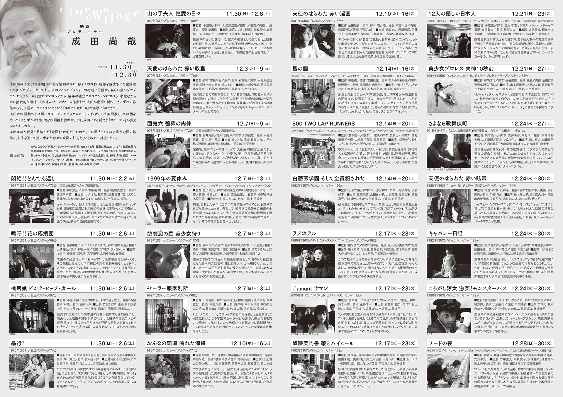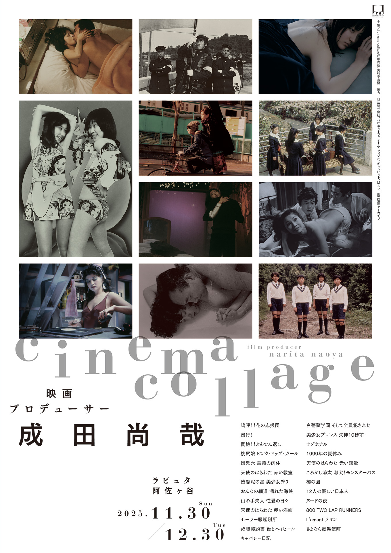 2025年11月30日から12月30日まで、ラピュタ阿佐ヶ谷で上映された、特集『cinema collage 映画プロデューサー 成田尚哉』のメインヴィジュアルをデザインしました。